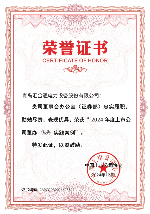 榮譽(yù)丨匯金通榮獲中國上市公司協(xié)會(huì)“2024年度上市公司董辦優(yōu)秀實(shí)踐案例”