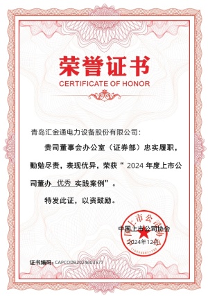 在中國上市公司協(xié)會“2024年上市公司可持續(xù)發(fā)展實踐案例”評選中,匯金通榮獲“可持續(xù)發(fā)展優(yōu)秀實踐案例”。